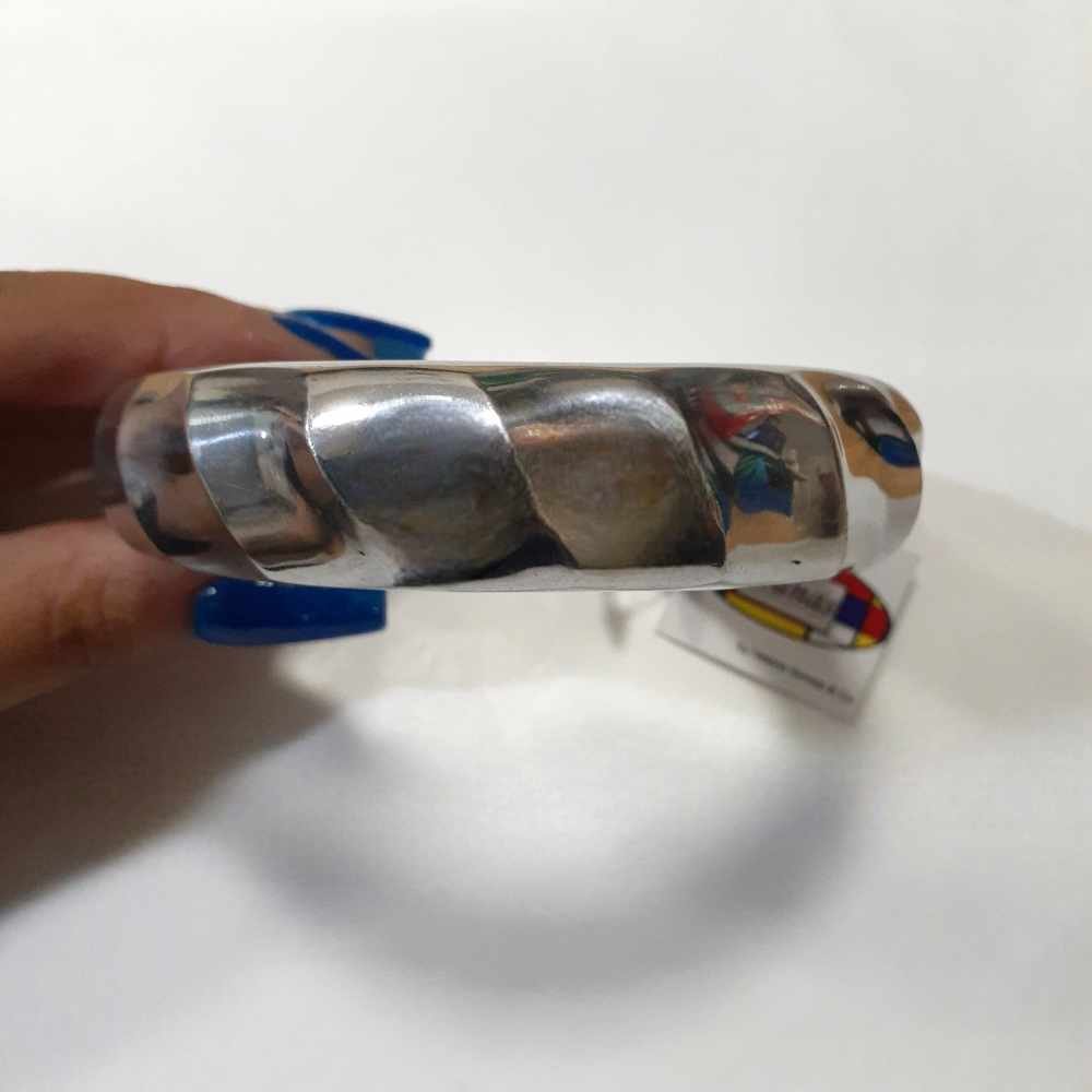 Pulseira “Convexo” feita de material alumínio, sendo antioxidante, hipoalergênico e fácil de limpar.